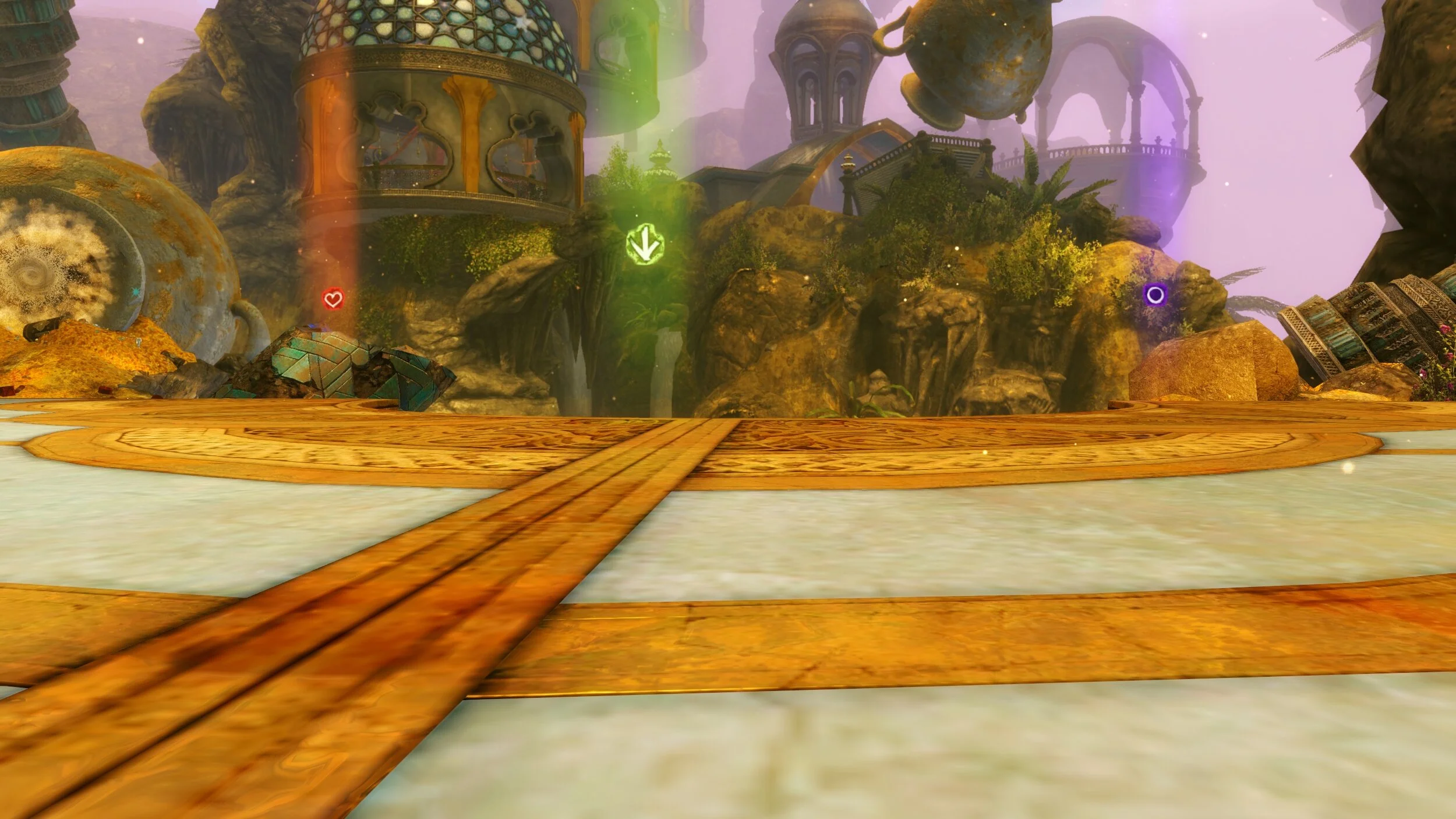 Schilder die gesammelt werden müssen, beginnen auf den Plattformen rechts von Pfeil, meistens um Kreis herum. Es kann aber auch vorkommen, dass das erste Schild auch sehr nahe an Pfeil erscheint. Positioniert euch also am besten zwischen Pfeil und Kreis und passt auf wo euer erstes Schild erscheint. Schilder sind grün-blaue Kugeln mit einer weißen Aura um sich herum.