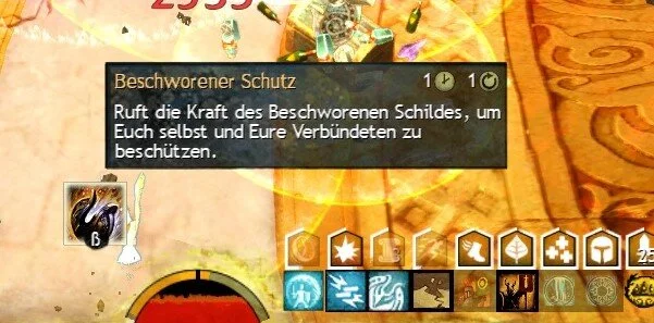 Durch das aufsammeln von Schildern bekommt man die Spezial-Attacken-Fähigkeit: Beschworener Schutz -> Ruft die Kraft des Beschworenen Schildes, um Euch selbst und Eure Verbündete zu beschützen.
