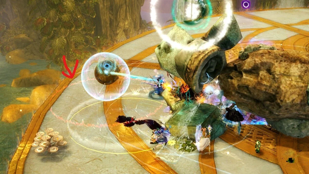 Kurz bevor ein Arm niederschlägt, also ein rotes AOE-Feld auf einer Plattform kommt, wählt der Arm zufällig einen Spieler aus. Nun ist die Position des Spielers entscheidend. Steht beispielsweise ein Spieler auf der ganz äußern Plattform, die Gruppe aber auf der mittleren und der Spieler der ganz außen steht wird ausgewählt, so schlägt der Arm auf die äußere Plattform und die Gruppe muss hin laufen.