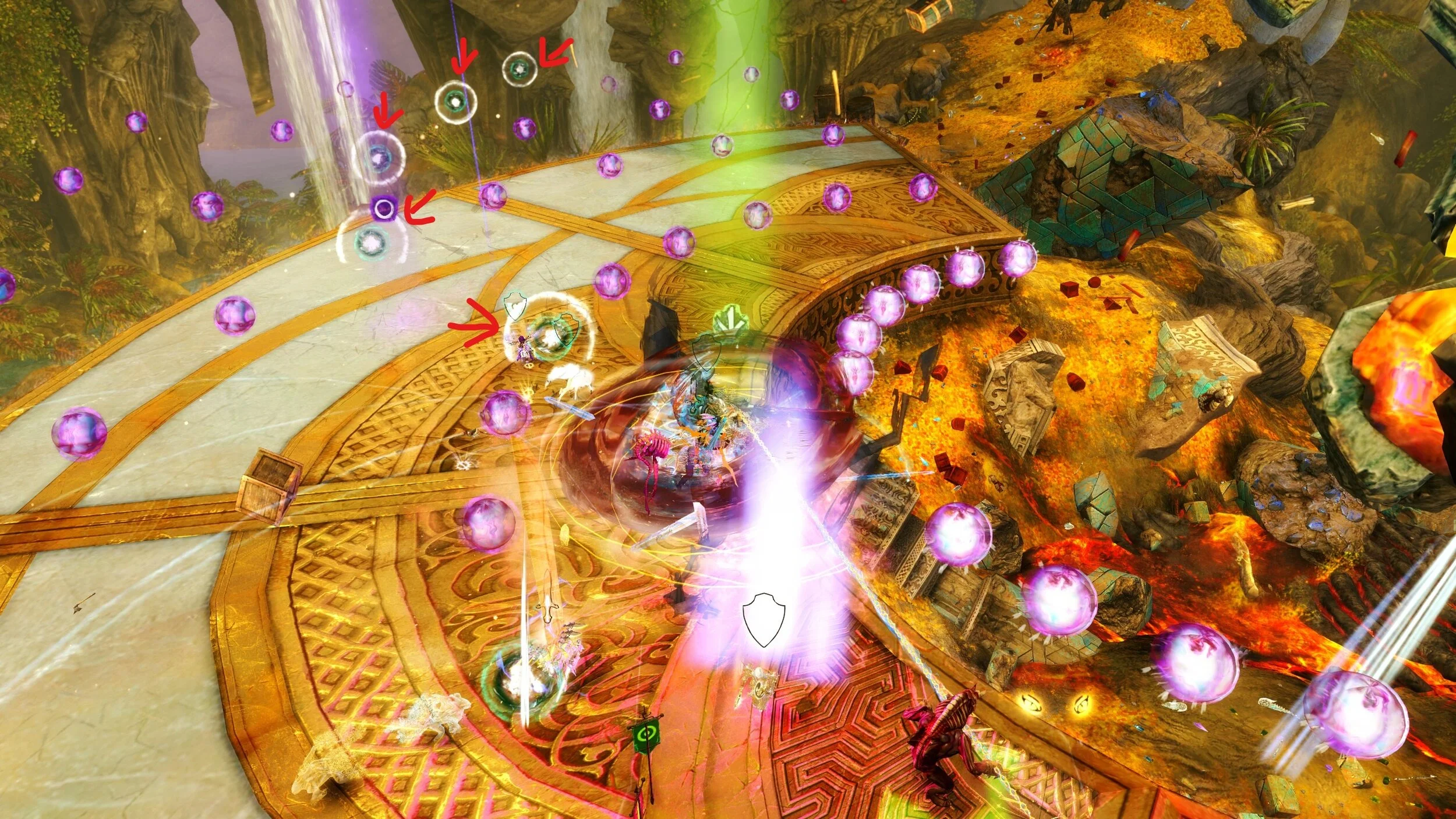 Aufgepasst! Wenn möglich versucht den Beschworenen Hieb so zu setzen, dass er sowohl den Arm, als auch die Schilder trifft, so könnt ihr dem Arm mehr Schaden machen.
