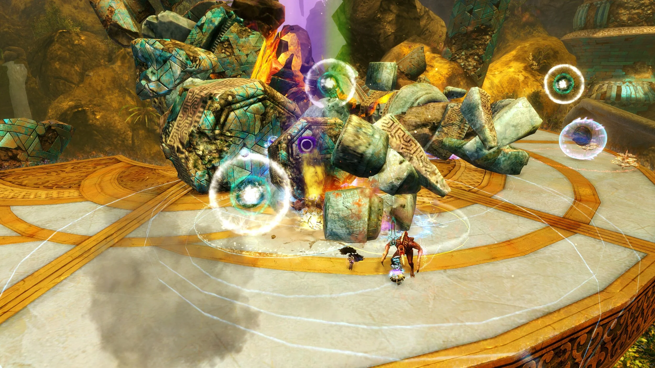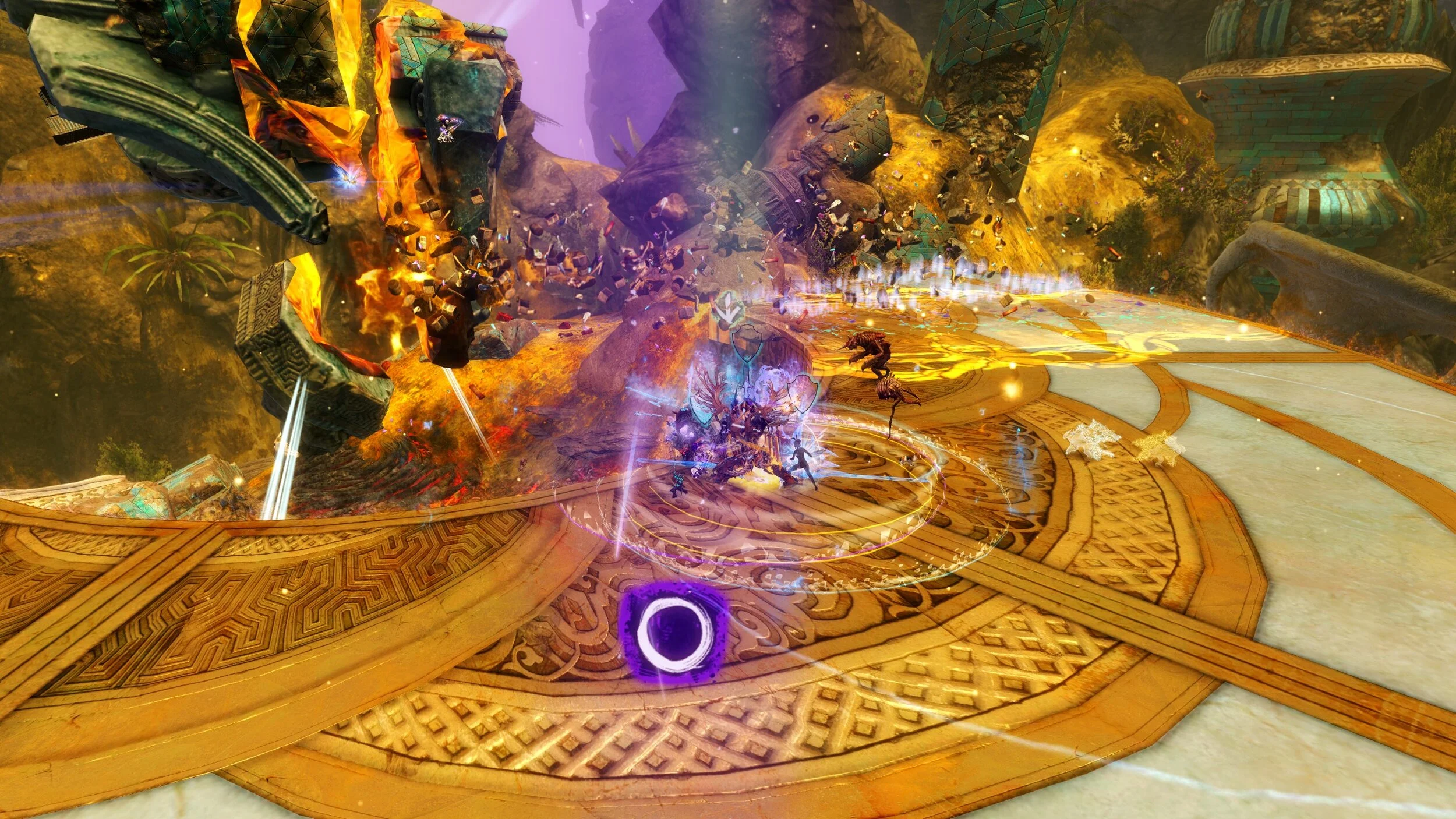 Anstelle des in die Händeklatschens, lässt sie nun Trümmer vom Himmel regnen. Diese Trümmer erscheinen als unterschiedlich große AOE-Felder auf dem Boden, die sich aufladen. Voll aufgeladen fallen auf die Position Trümmer. Wird ein normaler Spieler von Trümmern getroffen passiert nicht viel, er bekommt Schaden und wir kurz betäubt. Wird man jedoch getroffen, während man Schilder oder Schwerter aufgesammelt hat, verliert man alle Stapel und wir kurz betäubt. Die Schilder oder Schwerter liegen um diesen Spieler herum, als grüne Kreise und können erneut aufgesammelt werden (am besten natürlich von dem Spieler der sie vorher auch hatte).