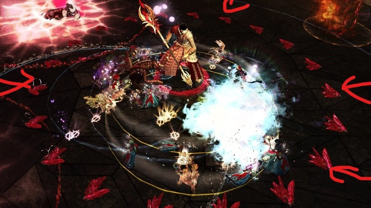 Auch hier möchten wir eine Mechanik wieder genauer erklären und zwar die der Bomben. 5 zufällige Spieler bekommen eine Bombe, das heißt um sie herum erscheint ein oranges Feld welches sich rot auffüllt. Ist es komplett aufgefüllt explodieren sie. Die 5 Spieler müssen nun auseinander laufen und dürfen keinen anderen Spieler mit ihrem Kreis berühren. sollten sich die orangen Kreise überschreiten macht das nichts. Besonders vorsichtig muss man wegen des Debuffs sein, nicht das man in einem ungünstigen Moment niedergeschlagen wird.