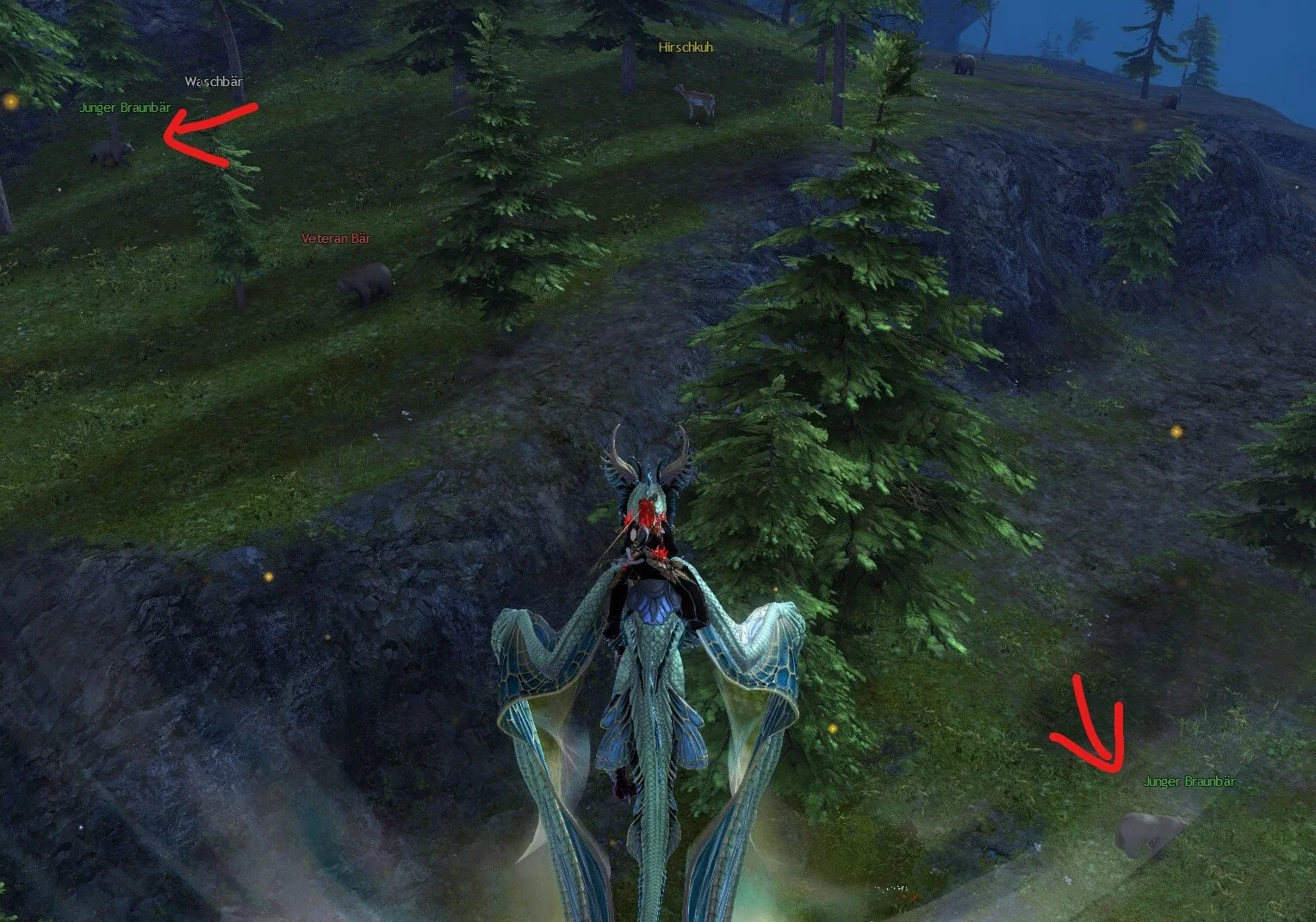 Position der jungen Schwarzbären östlich der Wegmarke Terra Carorunda
