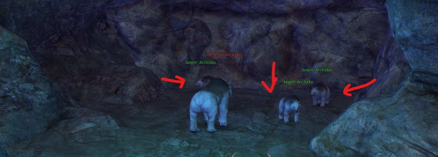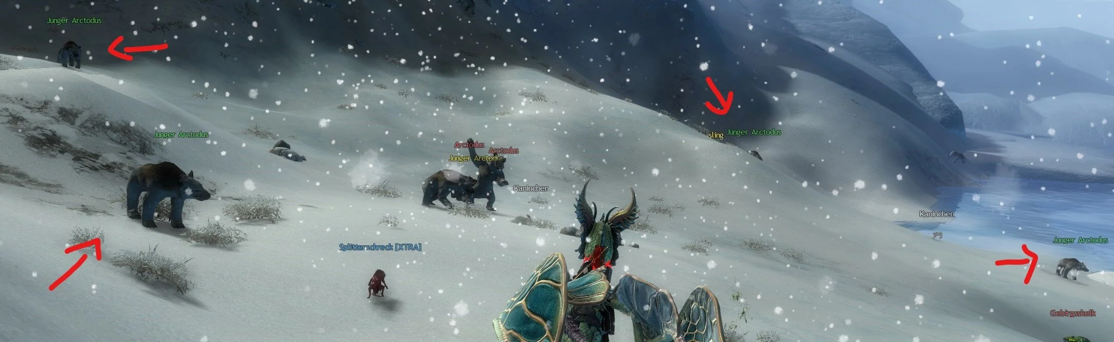 Position der jungen Arctodus nord-westlich der Wegmarke Blaue Eisglanz