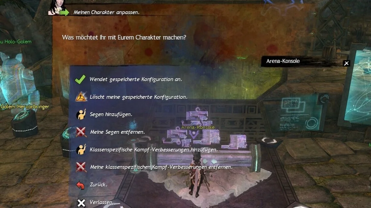 Mit der Arena-Konsole kann man sich selbst und die Umgebung der Arena anpassen. Dazu hat man verschiedene Möglichkeiten: