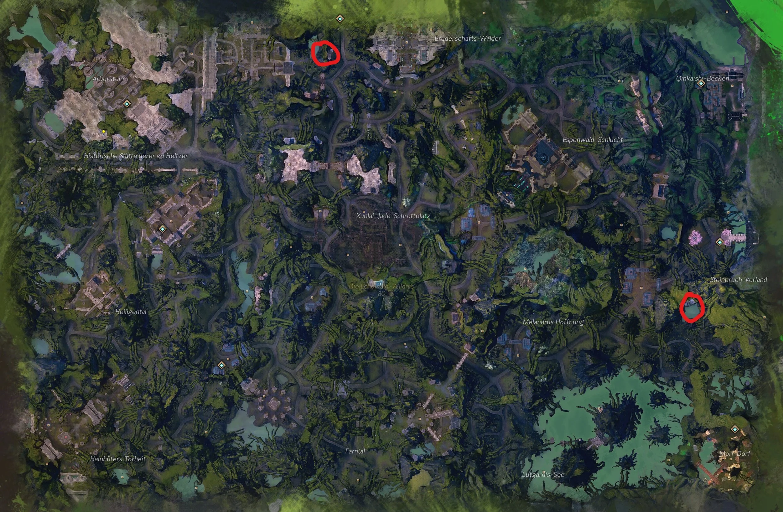 Auf der Karte seht ihr die Position alle Tiergefährten, die ihr in der Echowald-Wildnis finden könnt.