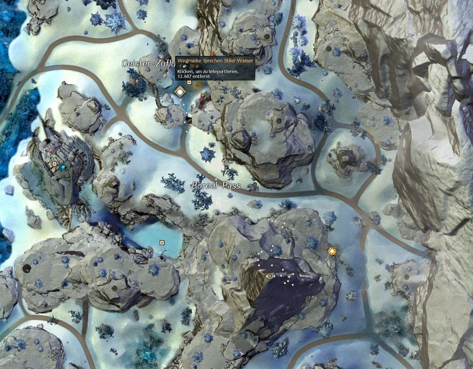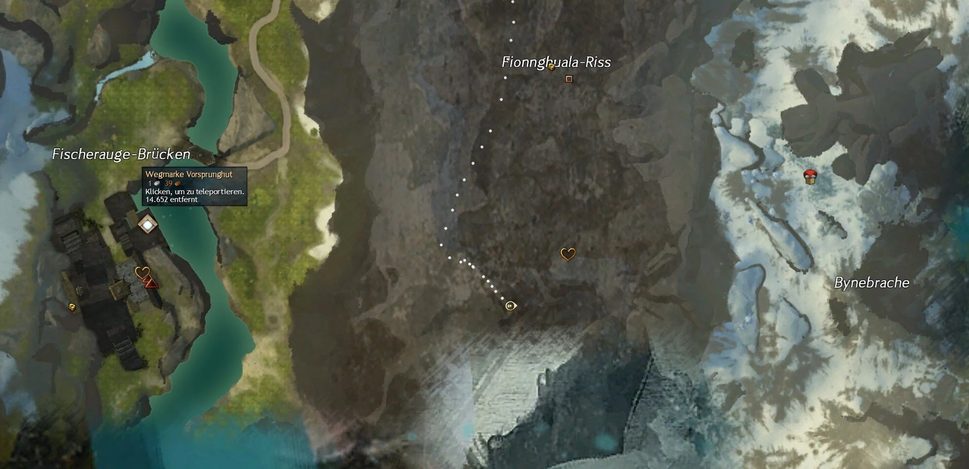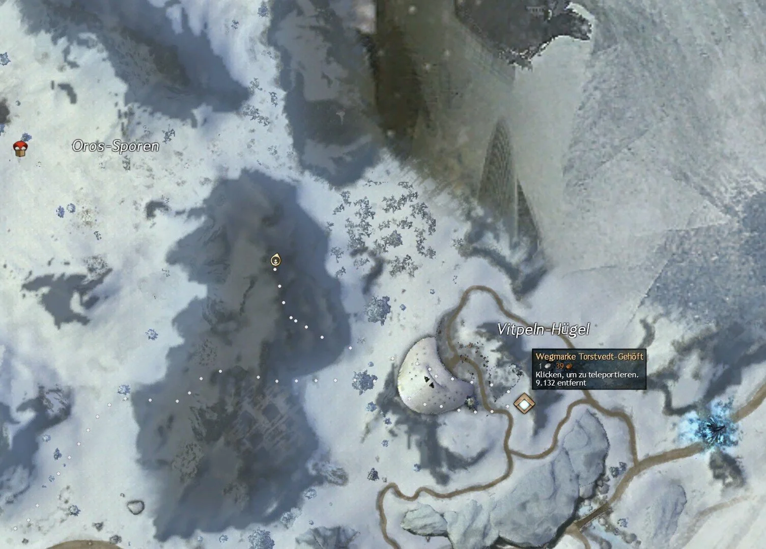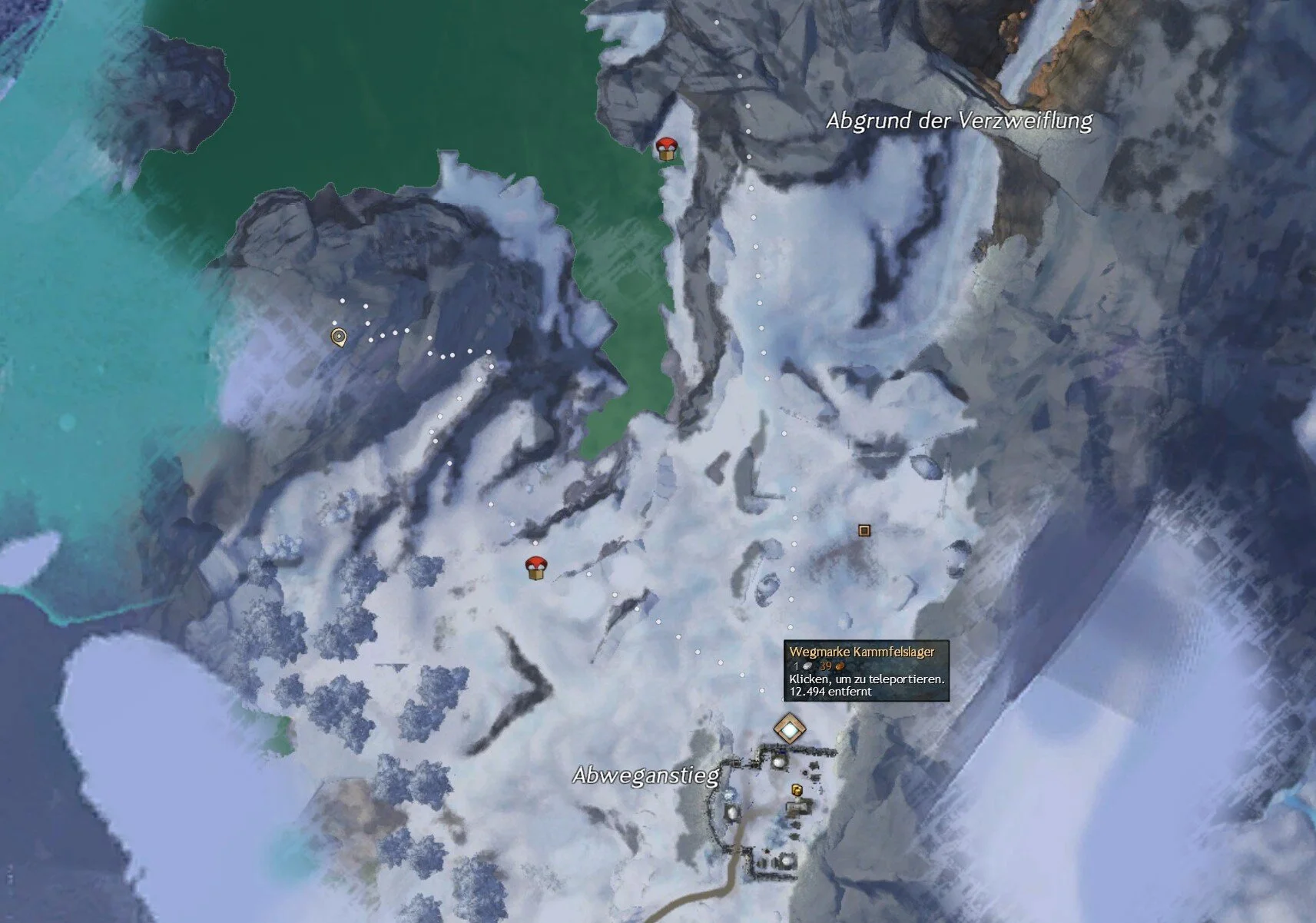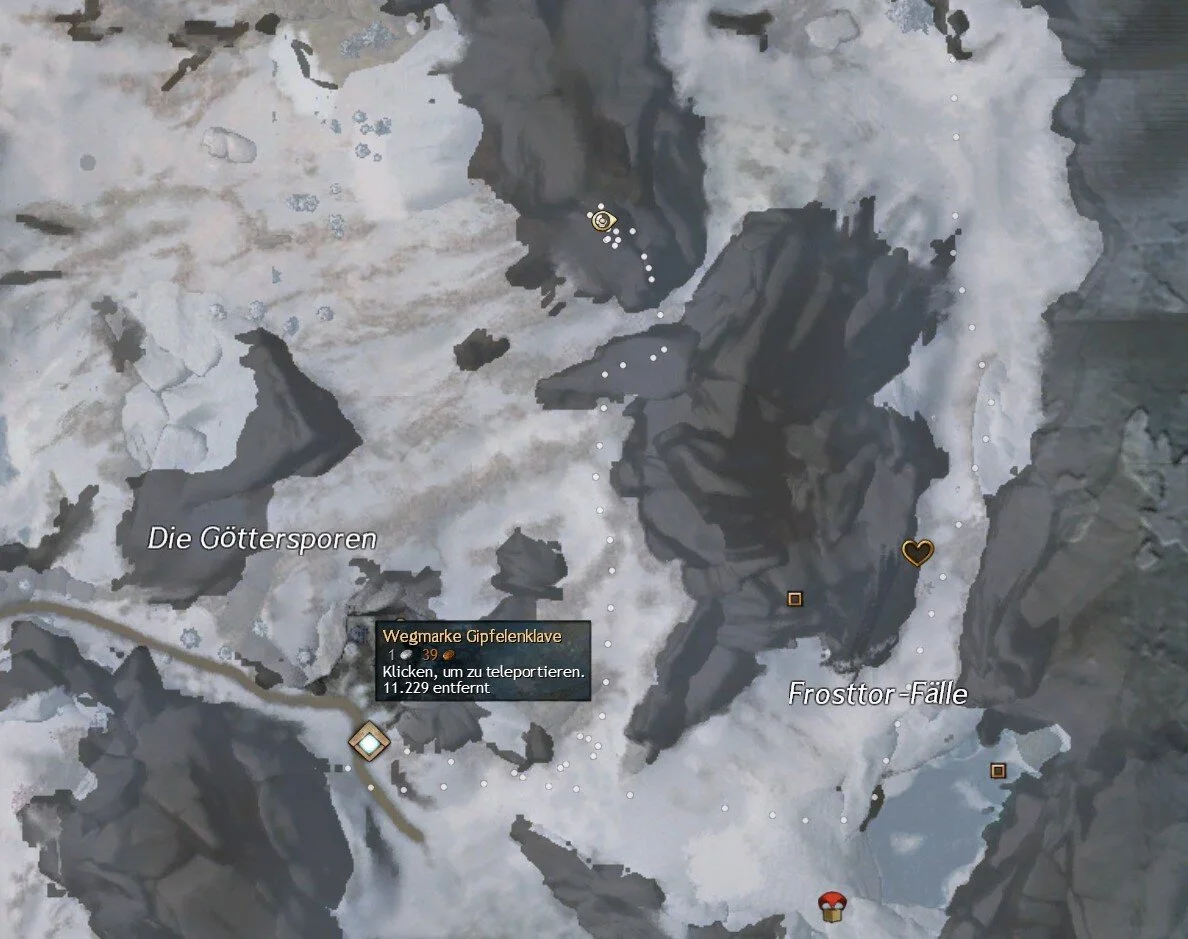 Dies ist der am schwierigsten zu erreichende Punkt. Man teleportiert sich zur Wegmarke: Gipfelenklave [&BJgBAAA=]