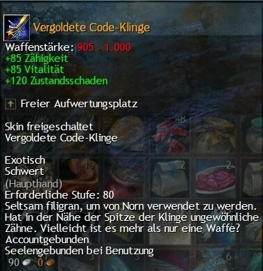 aus der Truhe nach dem Abschluss des nördlichen Karten-Meta-Events auf der Nieselwald-Küste. Nach dem Kampf gegen die Klaue Jormags. 4-9 Erinnerungen.