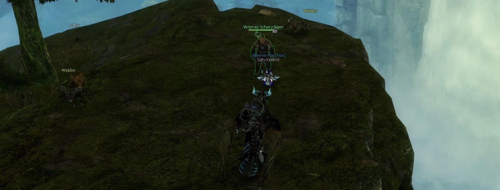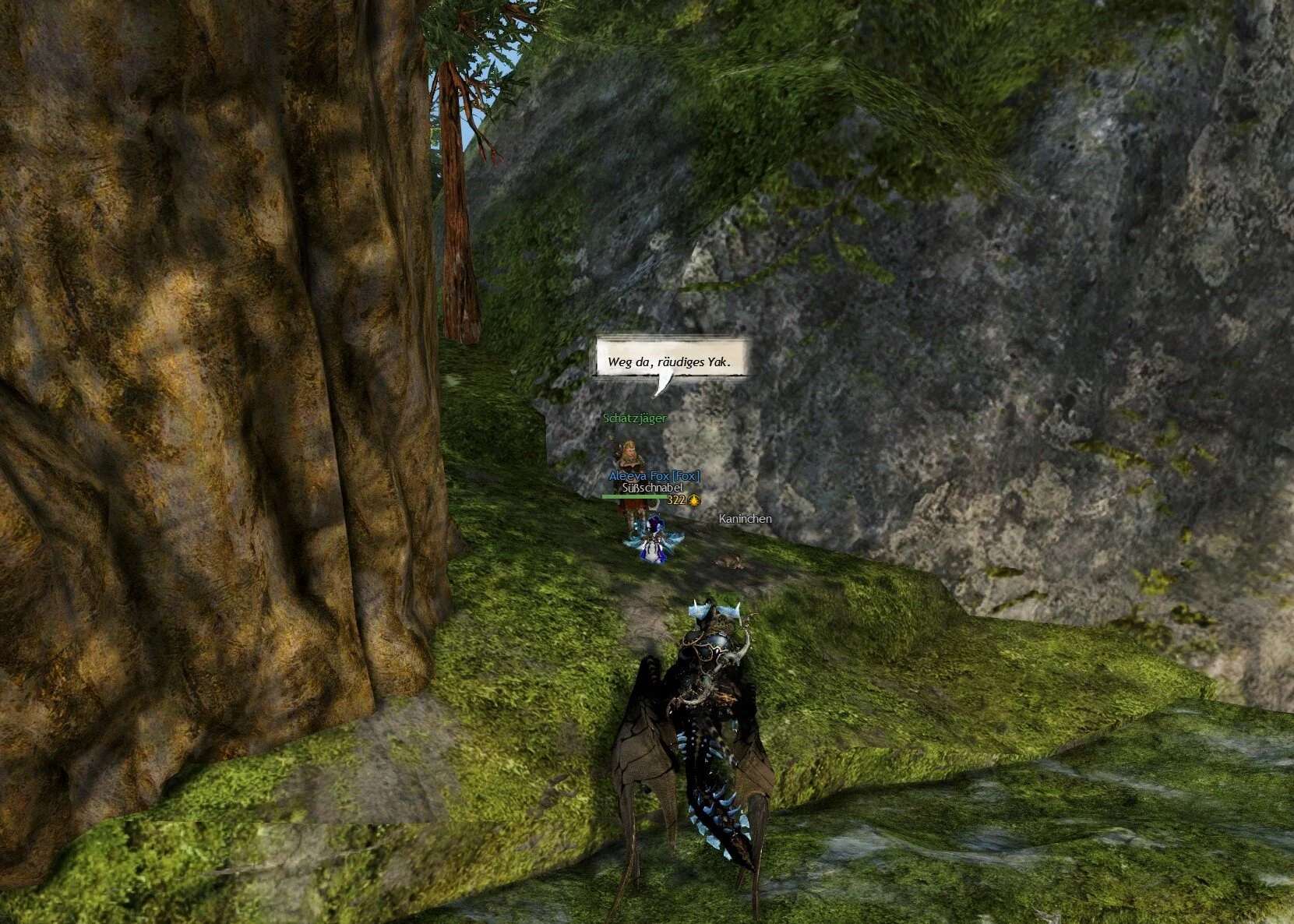Für Hinweis Nummer 5 müsst ihr auf einen Felsvorsprung über einem Weg, der in die Höhle bei den Nieselwald-Gipfeln hinein führt.
