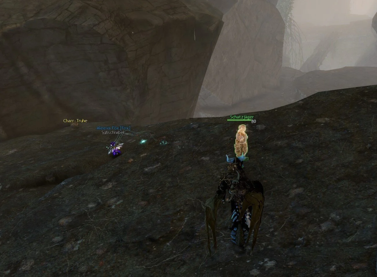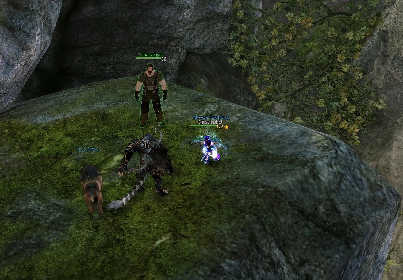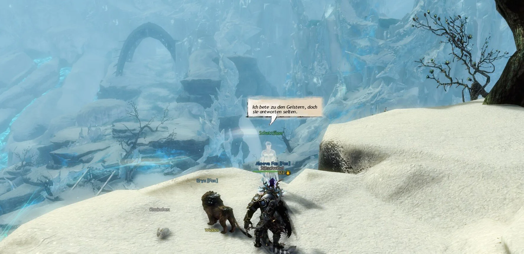 Hinweis Nummer 4 befindet sich in der Höhle der Führenden Geister. Habt ihr die Lebendige Geschichte bereits gespielt, ist der Schatzjäger dort, wo es bei dem Abenteuer des Ochsen die Charr-Truhe hatte.