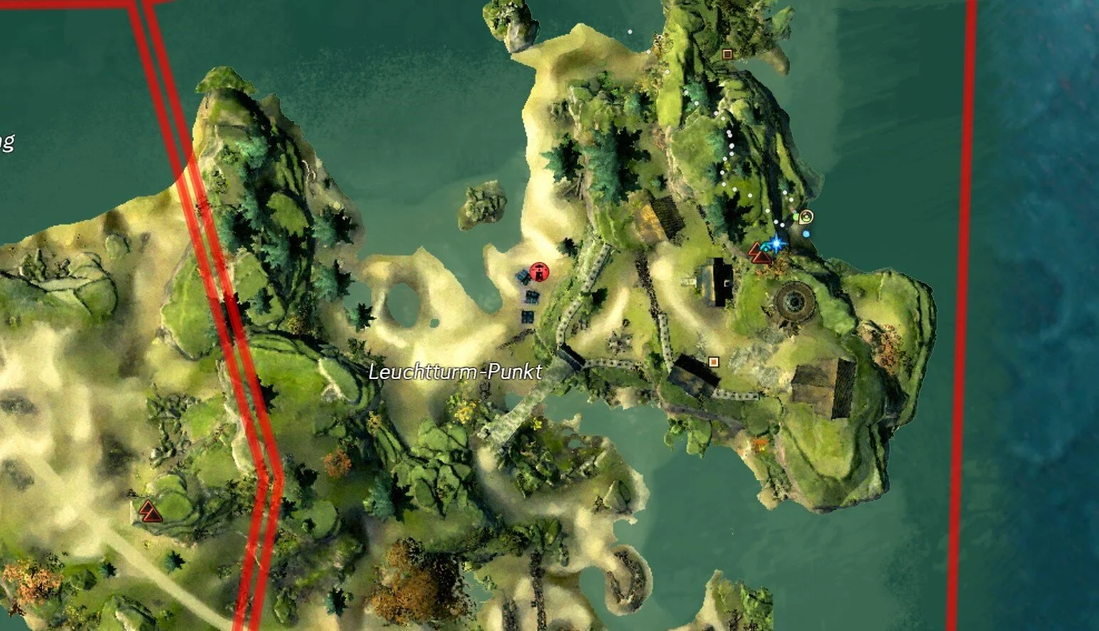 Für Hinweis Nummer 2 steht der entsprechende Schatzjäger beim Leuchtturm-Punkt, östlich des Aussichtspunktes, unten am Strand.