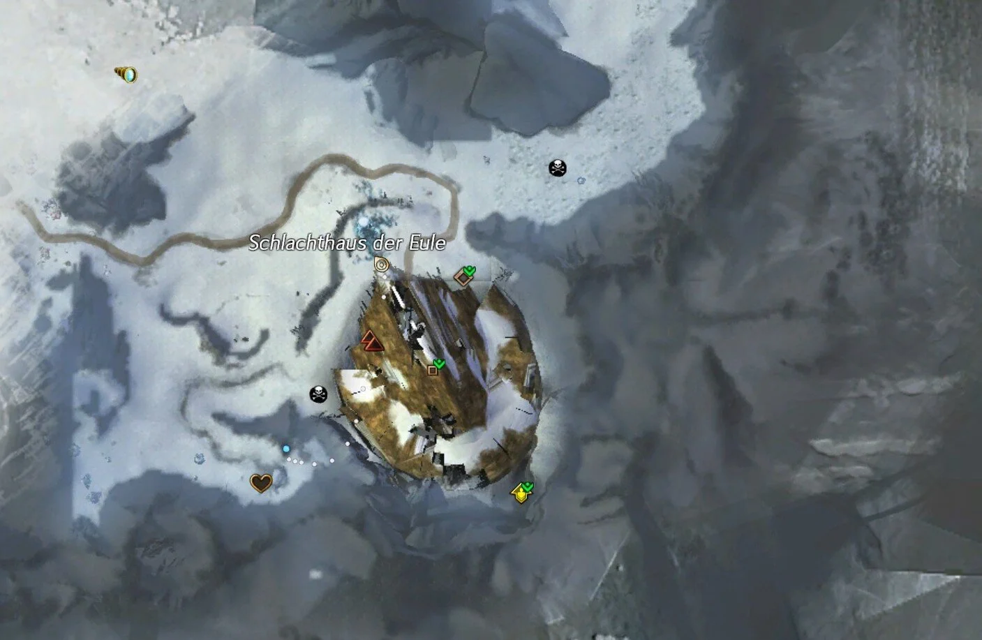 Position des Eulen Schamane = rotes x | Position des Veteran-Adler-Greif = unsere Markierung