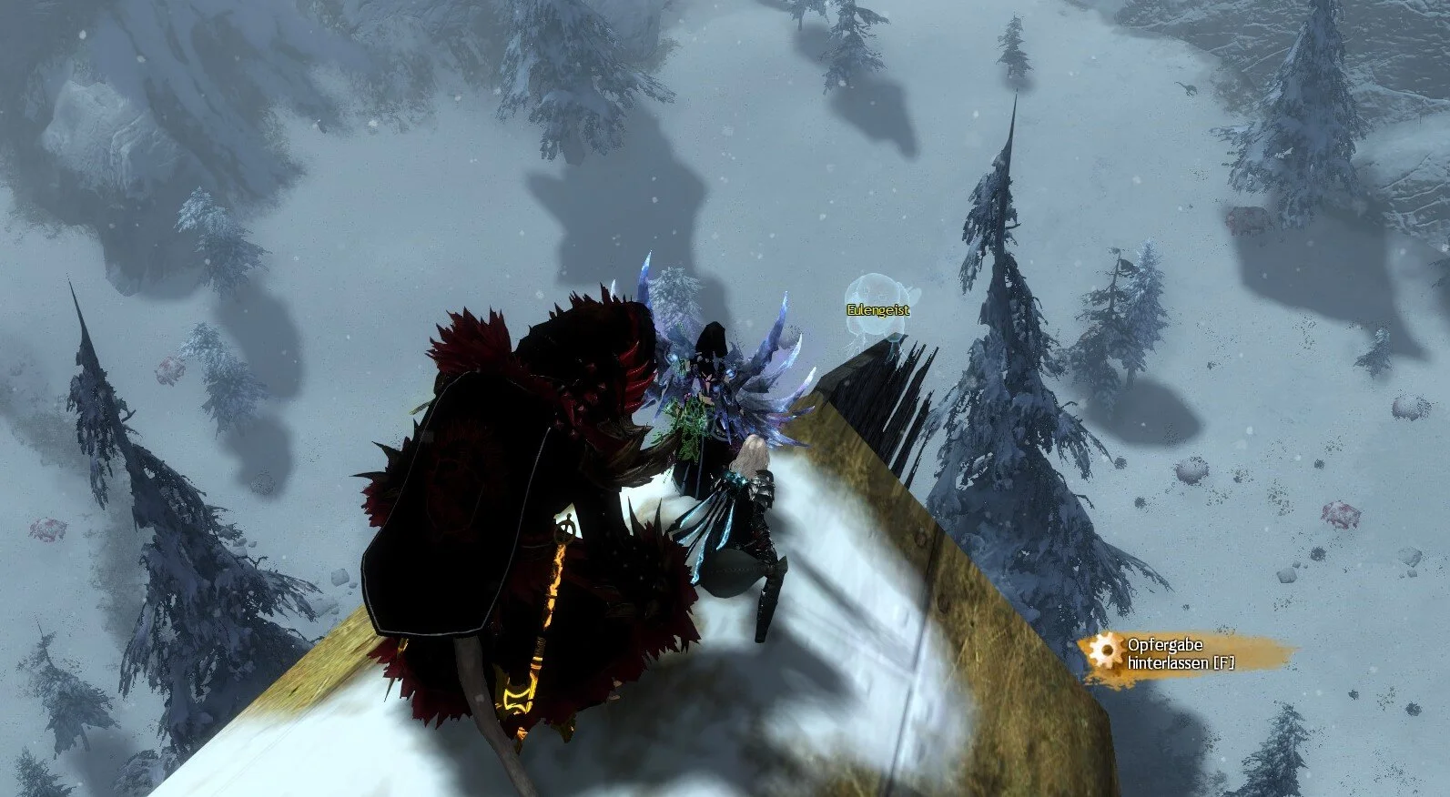 Haltet euch dann südlich und lauf in Richtung des Herzchen-Händlers. Habt ihr Garon angesprochen bittet er euch der Eule eine Opfergabe dazubringen. Geht dafür auf das Dach der Halle der Eule, bis ganz vorne an die Spitze. Dort sich der Geist einer Eule, vor dem ihr die Opfergabe darbringen könnt. Schon ist der zweite Teil fertig.