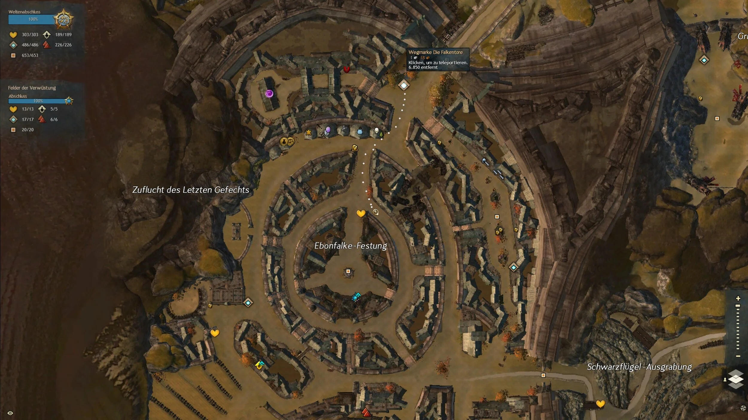 Die Falsche der Rage (leer) könnt ihr an einer Statue des Balthasars sammeln. Am einfachsten ist es wenn ihr von der Wegmarke: Wachposten [&BPsCAAA=] startet, in der Meerenge der Verwüstung. Von dort geht es nach Süd-Osten.
