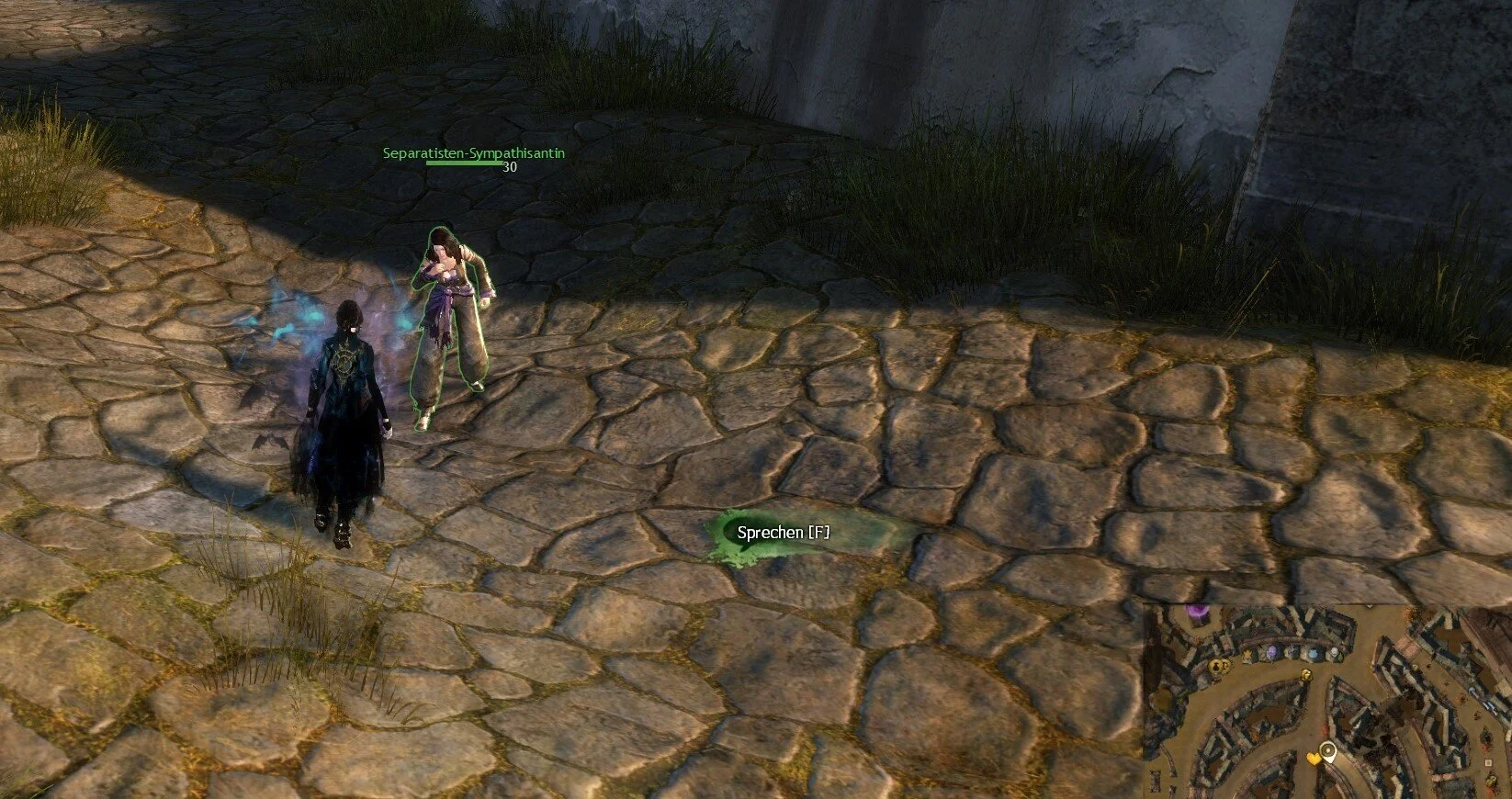 Gehen wir nun südlich, finden wir recht schnell eine Seperatisten-Sympathisantin, mit dieser müssen wir nur sprechen und die Flasche ist gefüllt. Es spielt keine Rolle mit welchem Seperatisten-Sympathisant man sich unterhält.