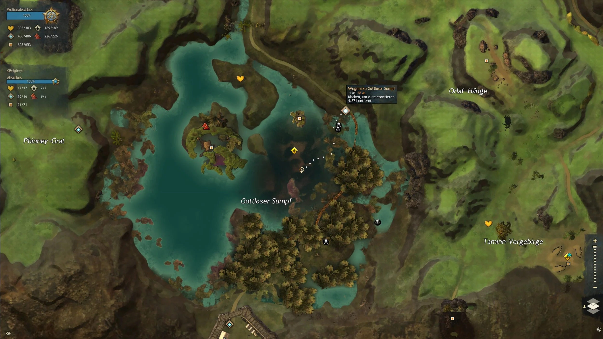 Für die leere Flasche der Furcht gehen wir zur Wegmarke: Gottloser Sumpf [&BPwAAAA=] im Königintal.