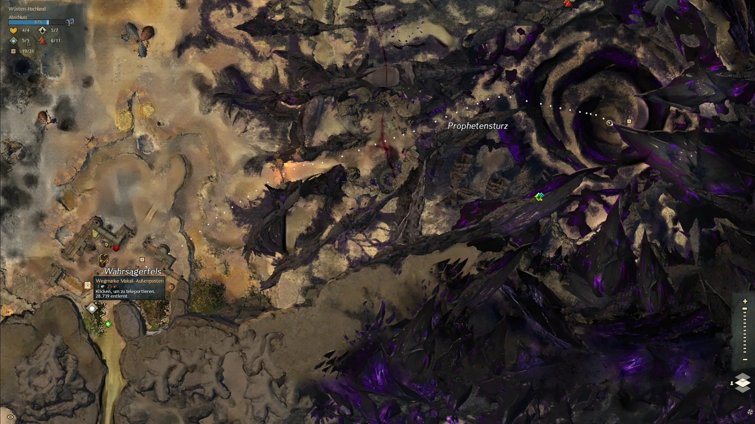 Dann nach Osten zum Prophetensturz und zu Glints Höhle. Am Boden angekommen füllt sich die Flasche automatisch.