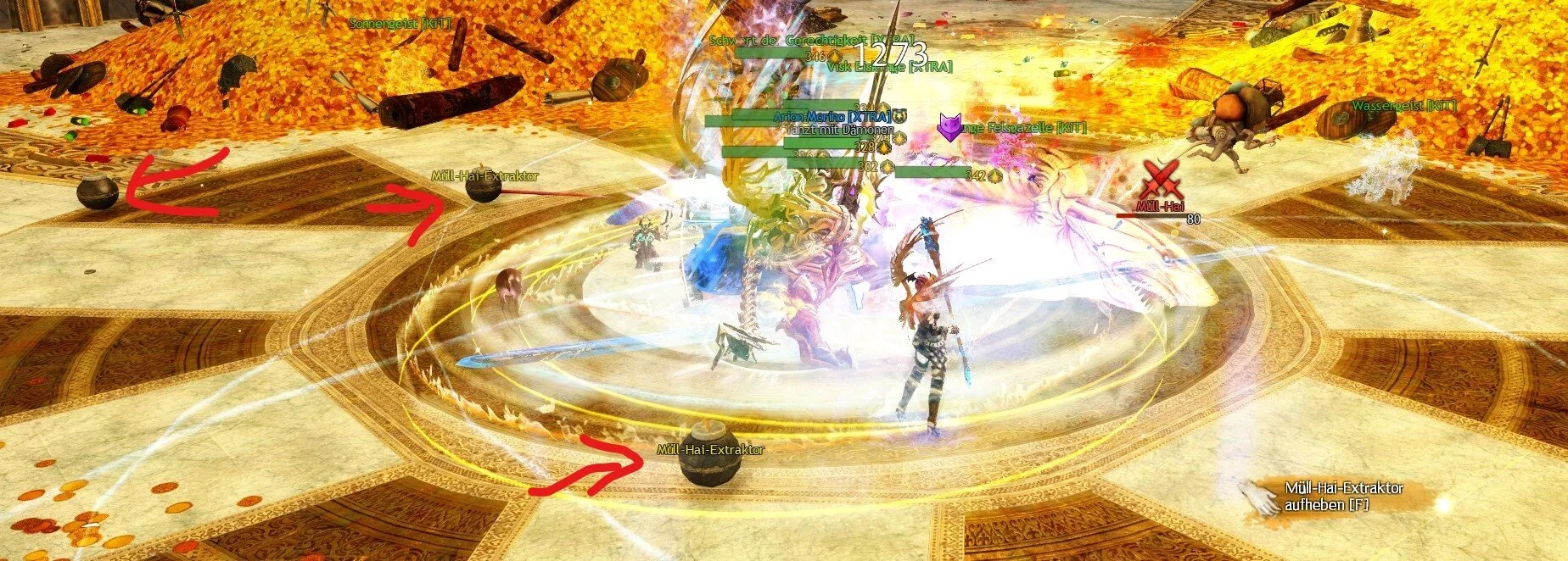 Kenut: alle ca. 20 Sekunden kommt entweder die Welle oder ihre AoE-Felder