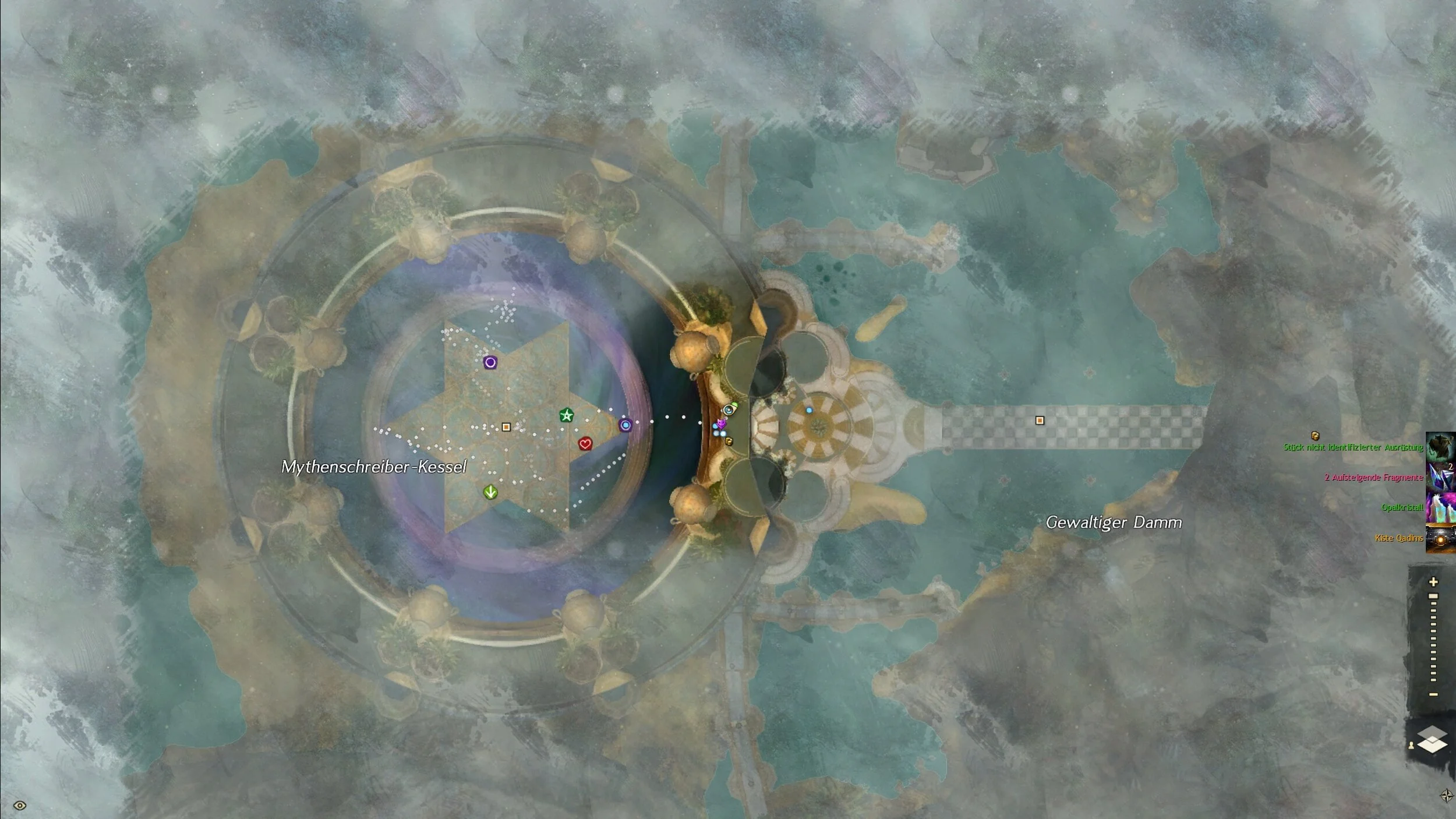 Ist Qadim tot kann man noch eine kleine Truhe plündern diese befindet sich am Rand des Mythenschreiber Kessels.